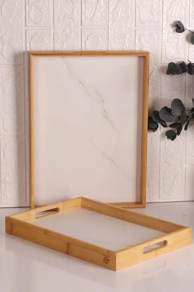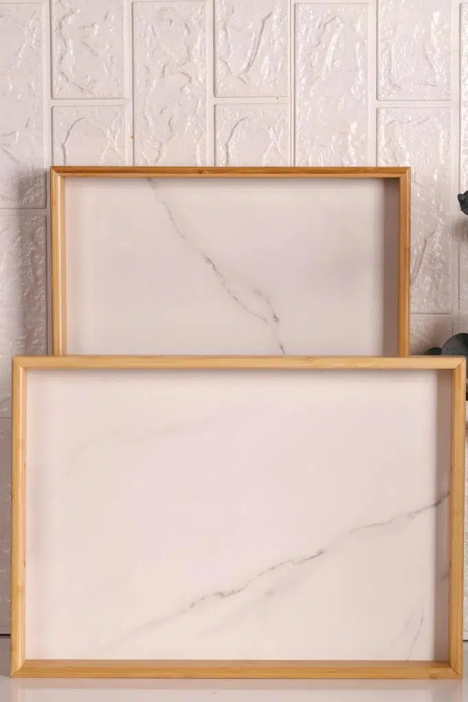 Bambum Marbella tepsi, 2’li mermer desenli tepsi seti, beyaz mermer desenli tepsi, büyük ve orta boy tepsi, kahvaltı sunum tepsisi, dekoratif sunum tepsi seti, mutfak aksesuarları