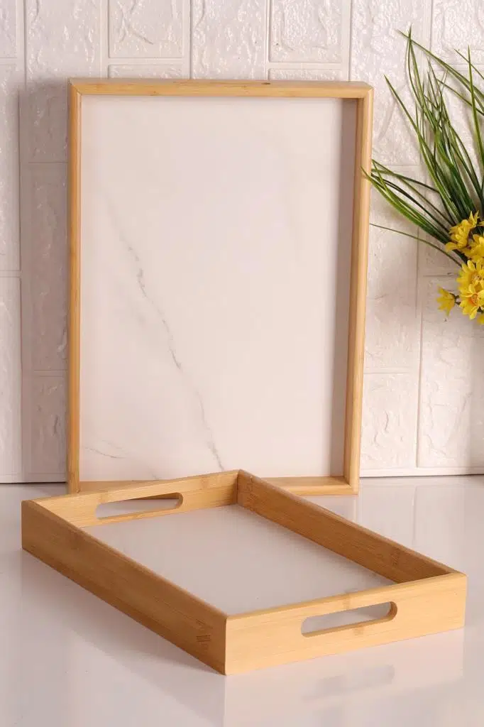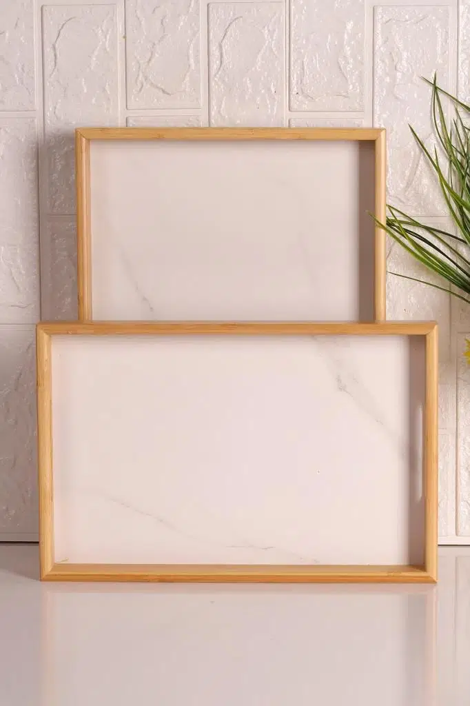 Bambum Marbella tepsi, mermer desenli tepsi seti, 2’li sunum tepsi, orta ve küçük boy tepsi, dekoratif tepsi, kahvaltı sunum tepsisi, modern mutfak aksesuarı, Bambum beyaz tepsi