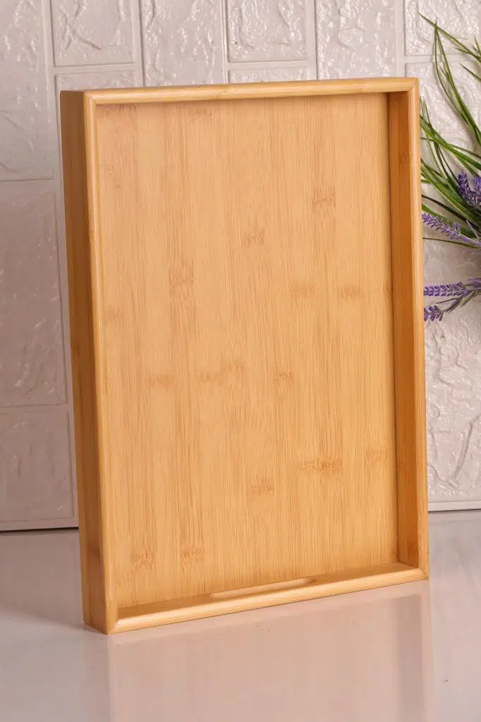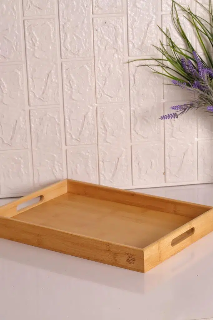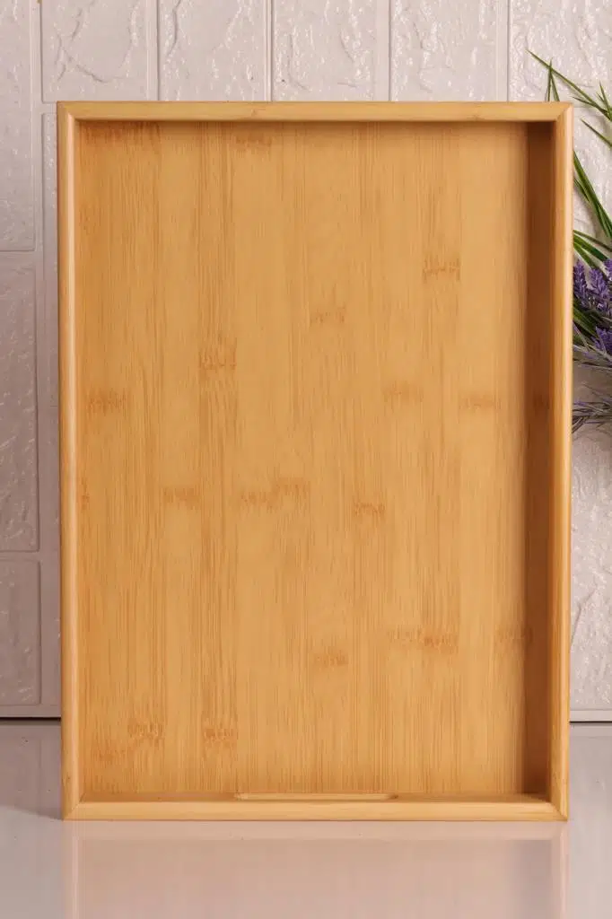 Bambum Marbella tepsi, orta boy servis tepsisi, bambu desenli tepsi, dekoratif mutfak tepsisi, kahve servisi tepsisi, doğal desenli sunum tabağı, şık mutfak aksesuarı