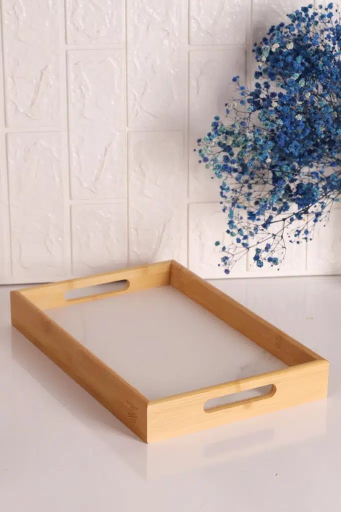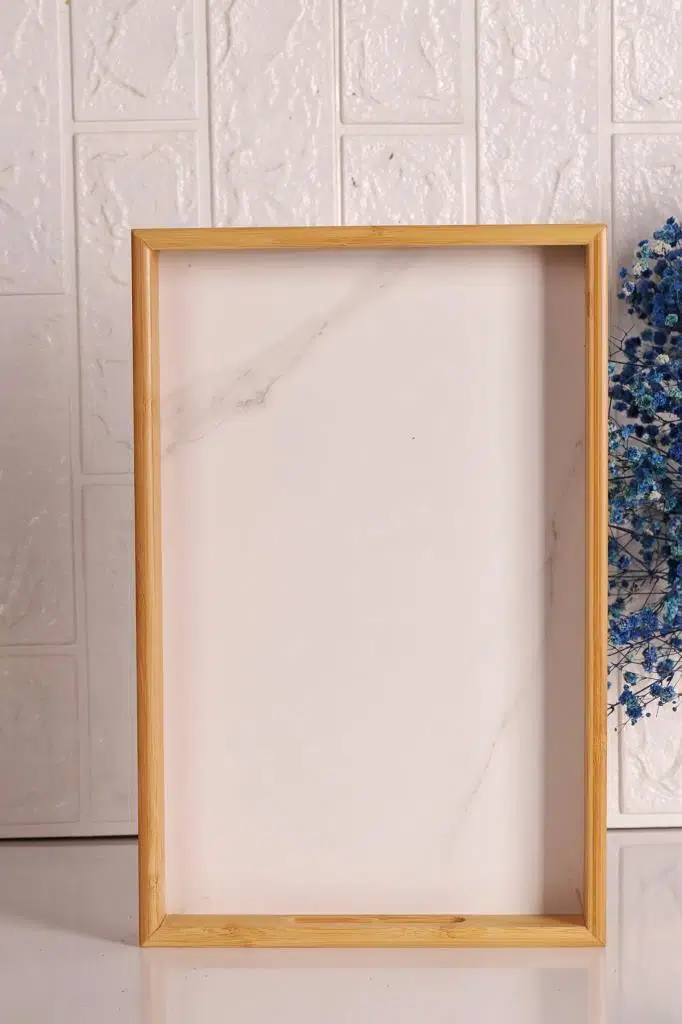 Bambum Marbella tepsi, küçük boy servis tepsisi, mermer desenli beyaz tepsi, dekoratif mutfak tepsisi, kahve servisi tepsisi, modern sunum tabağı, şık mutfak aksesuarı