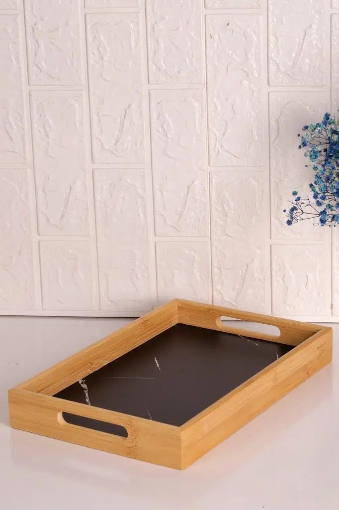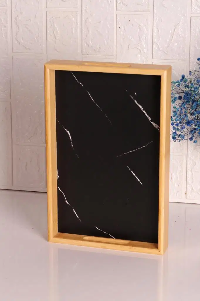 Mermer desenli siyah tepsi b1421 Boyut: 35 x 23 x 4,5 cm