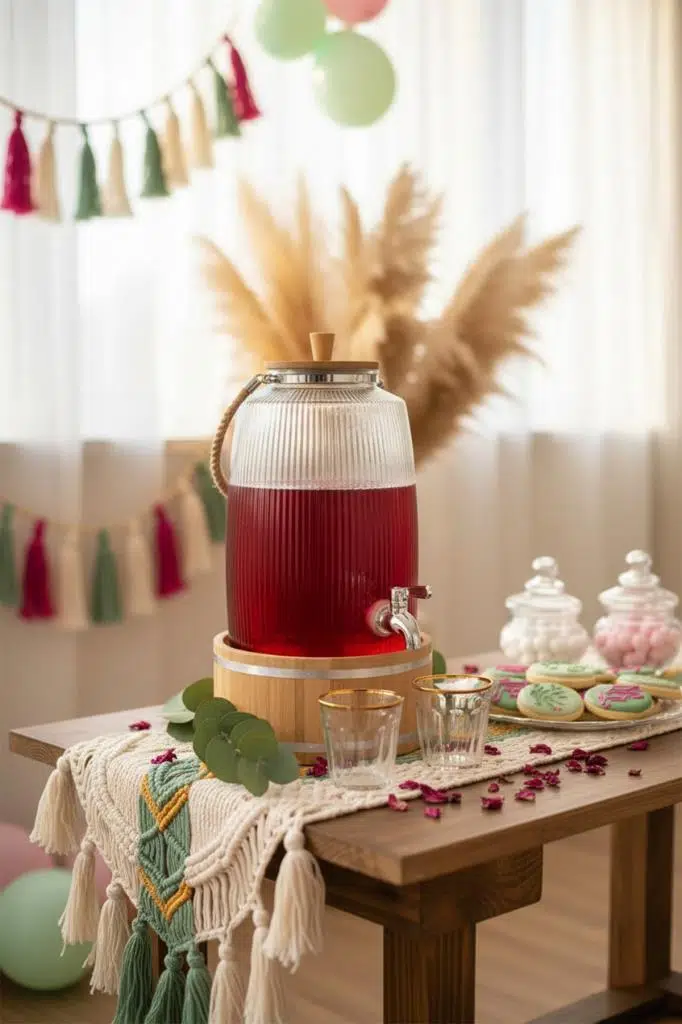 bambum cam sebil, bambu kapaklı cam sebil, 6 litre içecek sebili, ahşap standlı sebil, cam limonata sebili, sunum sebili, sağlıklı cam sebil, davet içecek sebili