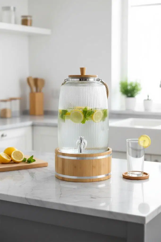 Doğal Malzemeler: Bambu kapak ve ahşap stand hem çevre dostu hem de dekoratif.