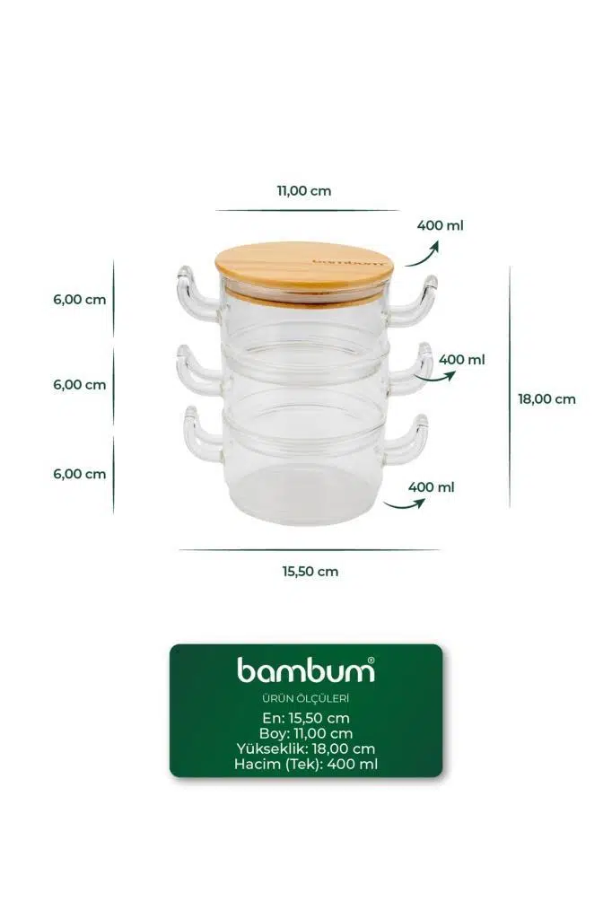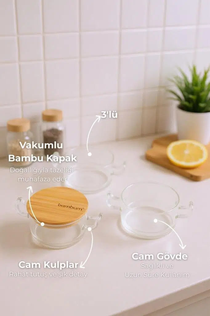 | Etiketler | Bambum Modena - 3'lü Bambu Kapaklı Cam Saklama Kabı |