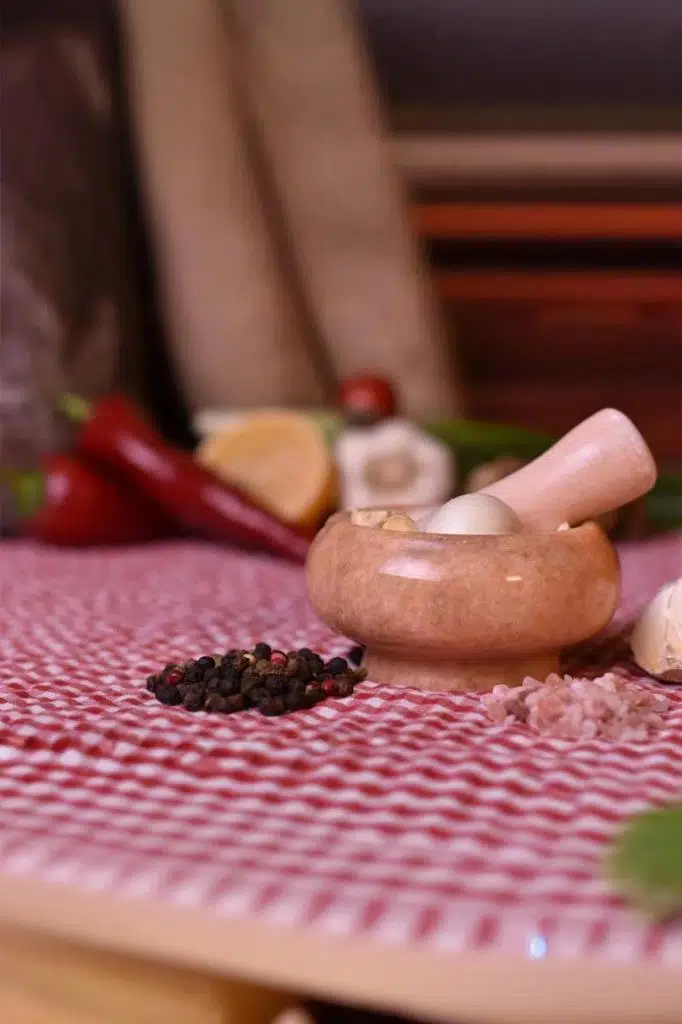 Bambum mortero mermer havan, doğal mermer malzemeden üretilmiş olup sağlamlığı ve şıklığıyla mutfaklarda hem işlevsellik hem de estetik bir kullanım sunar. Baharatları, otları ve küçük miktarda kuru gıdaları kolayca öğütmenizi sağlar. Sarı mermer dokusu modern ve zarif bir görünüm katar