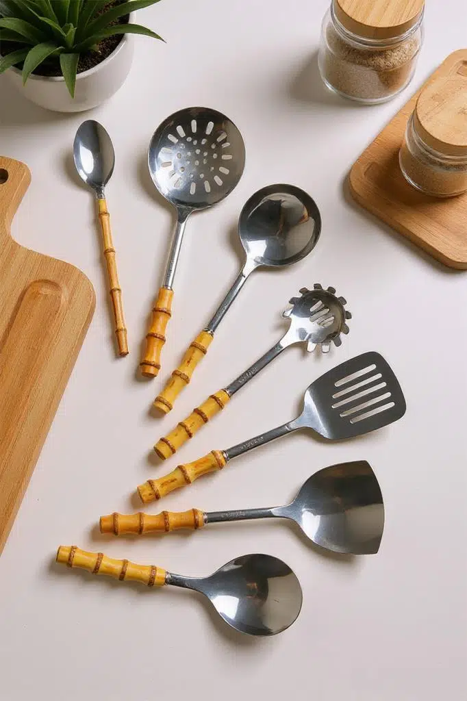 | Etiketler | Bambum Mundo 7 Parça Bambu Saplı Çelik Mutfak Gereç Seti Çeyiz Seti Kaşık Kevgir Kepçe |