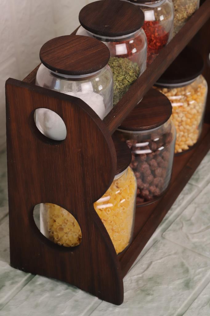 bambu standlı baharatlık seti, 2 katlı baharatlık, vakumlu cam kavanoz seti, bambum bench baharatlık, mutfak düzenleyici, cam saklama kabı seti, dekoratif baharatlık
