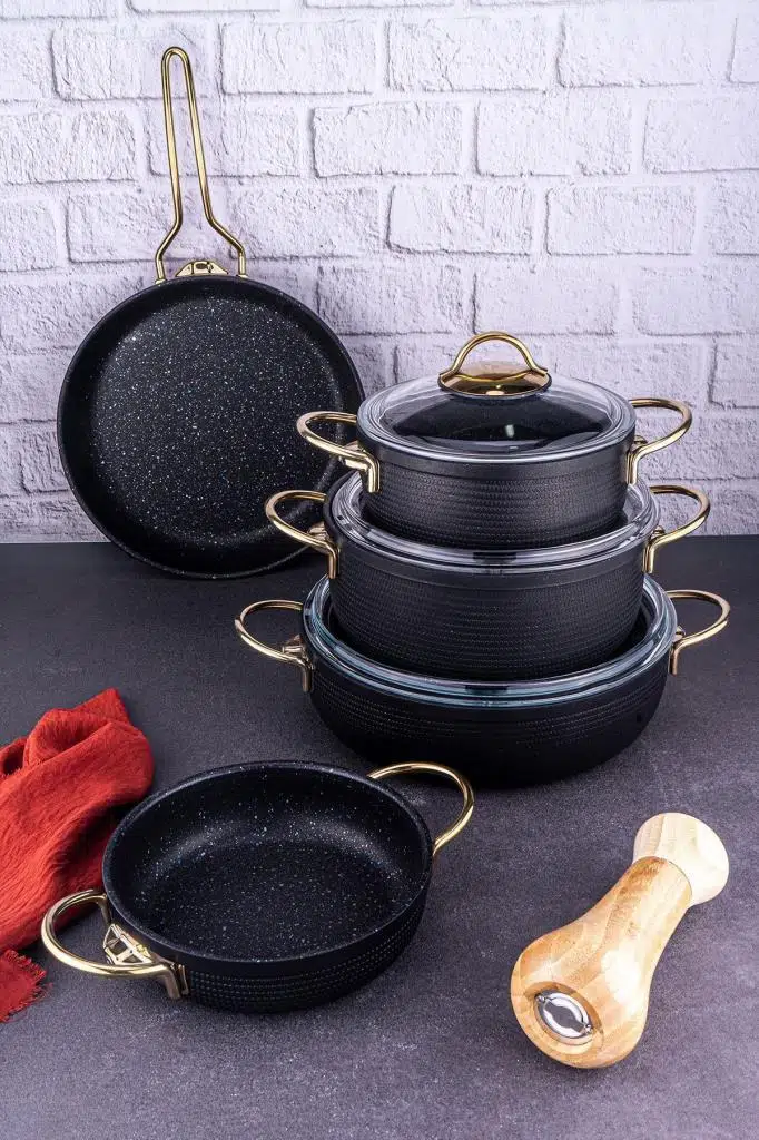 Bambum Node - 8 Parça Tencere Seti Siyah