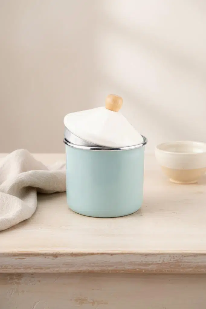 Mutfaklarınızda bahar tazeliği ve retro rüzgarları estirin! Bambum Nostalji Serisi'nin bu ferah üyesi, "Açık Yeşil" renginin huzur veren tonunu, emayenin sağlıklı ve dayanıklı yapısıyla buluşturuyor. 1 litrelik geniş hacmi, 12 cm'lik ideal genişliği ve şık ahşap tepeli kapağıyla; çay, kahve, şeker veya baharatlarınızı ilk günkü tazeliğinde saklarken tezgahınıza vintage bir şıklık katar.