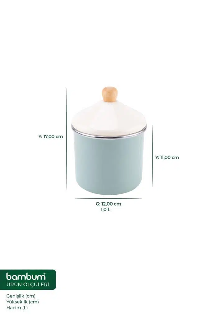 Bambum Nostalji - Ahşap Saplı Baharatlık Açık Yeşil 12 Cm | 1 Lt Emaye Saklama Kabı