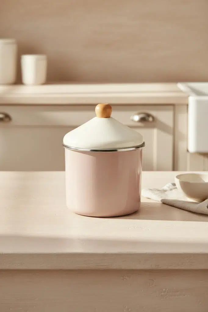 1 Adet Bambu Tepeli Emaye Saklama Kabı (Toprak Rengi)