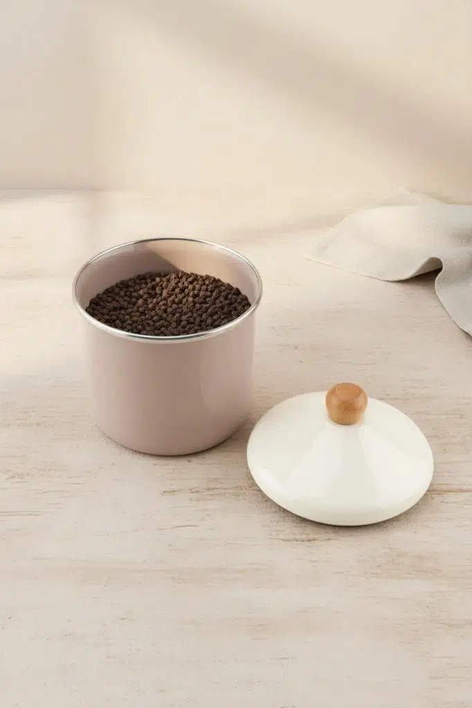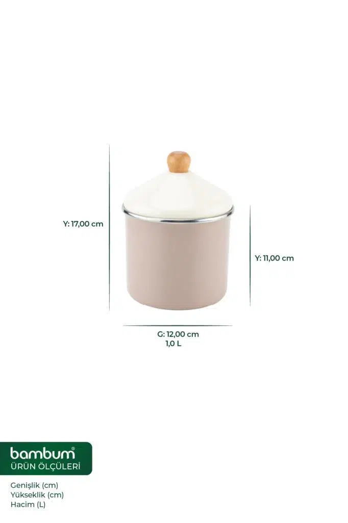 Bambum Nostalji - Bambu Tepeli Emaye Saklama Kabı & Baharatlık | Toprak Rengi (1 Litre)