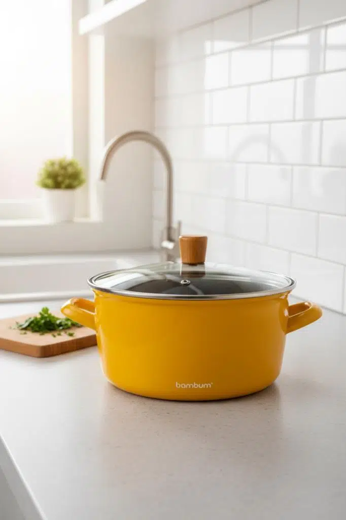 Mutfağınıza güneş gibi doğacak bir enerji ve geçmişin sıcaklığını katın! Bambum Nostalji Kızartma Tenceresi, göz alıcı hardal sarısı rengi ve retro formuyla tezgâhınızın en dikkat çekici parçası olacak. Sağlıklı ve dayanıklı emaye yapısı, ısıyı eşit dağıtarak az yağda bile en çıtır ve lezzetli sonuçları almanızı sağlar. İçerisindeki pratik süzgeç sepeti ile kızartma yapmak artık zahmetsiz bir keyfe dönüşüyor.