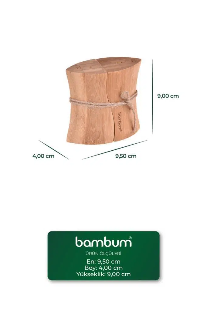 Sofralarınıza sıradanlığın dışında, modern ve sanatsal bir dokunuş katmak için tasarlanan Bambum Nunna Tuzluk & Biberlik Seti ile tanışın! %100 doğal bambudan üretilen bu set, alışılmışın dışındaki geometrik ve eğimli formuyla göz doldurur. Hem işlevsel bir baharatlık hem de masanızda duracak dekoratif bir obje arayanlar için mükemmel bir seçimdir.