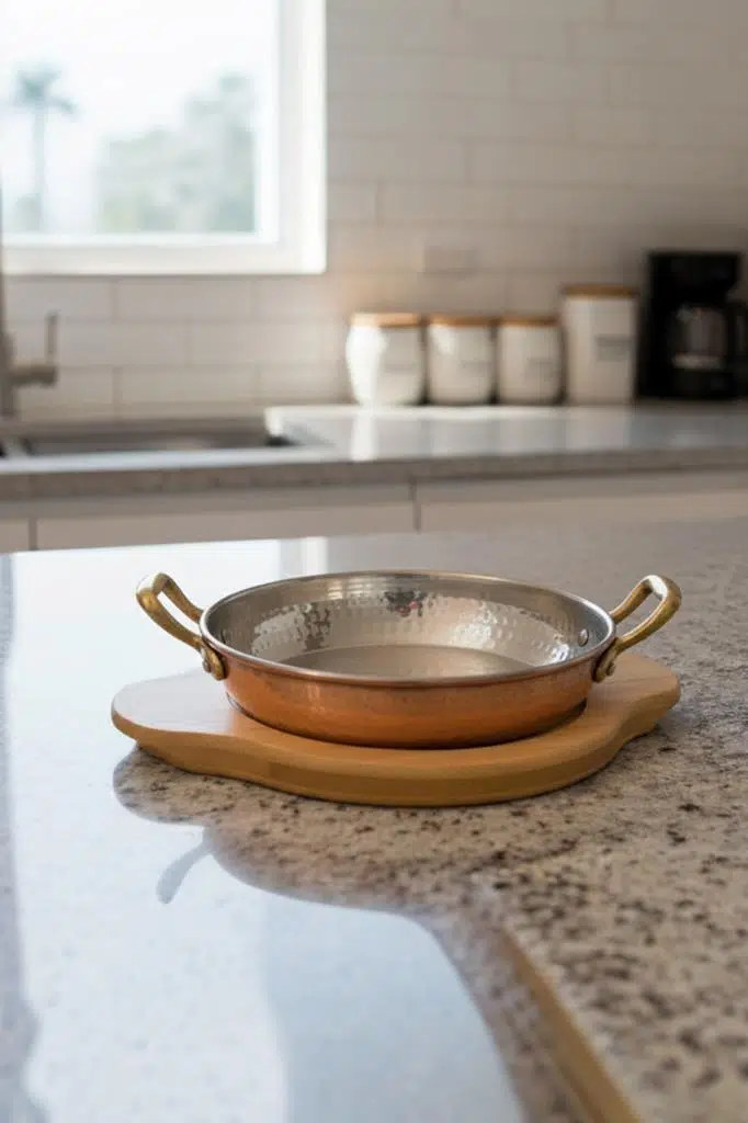 Tasarım: Fırından veya ocaktan alındığı gibi doğrudan sofraya servis imkanı. Bambu altlık, sahanın ısısına karşı masanızı korur ve sunuma doğal bir zarafet katar.
