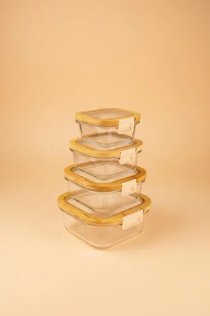 Bu setin en büyük ayrıcalığı; bambu kapakların ortasında yer alan cam pencere detayıdır. Bu akıllı tasarım sayesinde, kaplar dolapta üst üste dizili olsa bile, kapağı açmadan hangi boyda ne olduğunu kuş bakışı görebilirsiniz. Küçükten büyüğe sıralanan 4 farklı boy, iç içe geçebilen yapısıyla kullanılmadığında dolabınızda minimum yer kaplar.