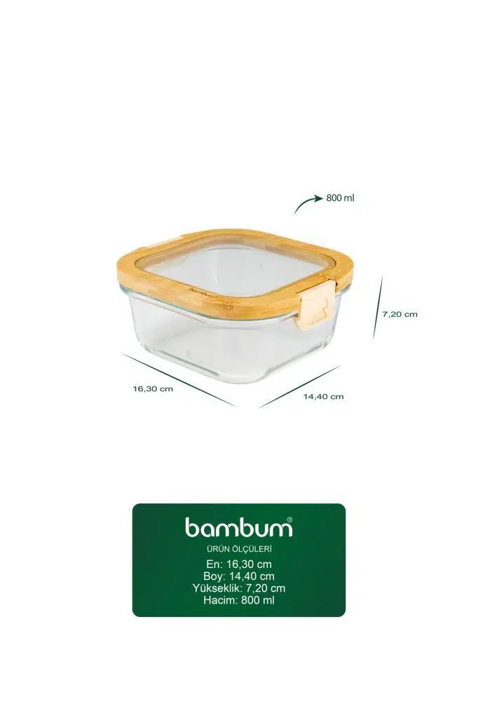 Mutfak düzeninde hem kapasite hem de görsellik arayanlar için tasarlandı! Bambum Poira serisinin en geniş üyelerinden biri olan 800 ml'lik bu model, artan ana yemeklerinizi veya geniş porsiyonlu salatalarınızı saklamak için ideal bir çözümdür.