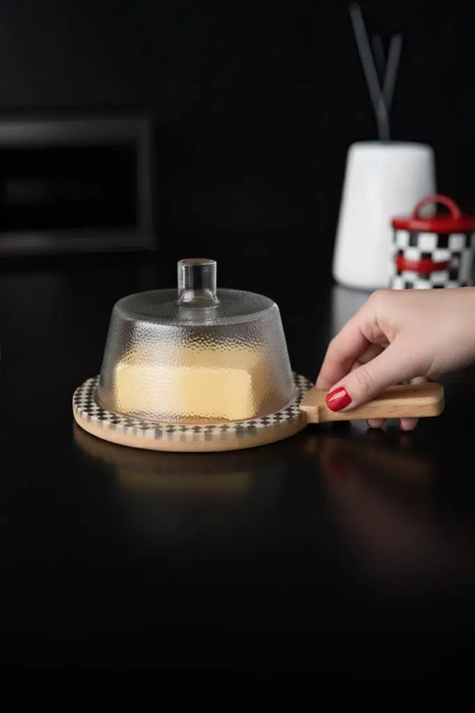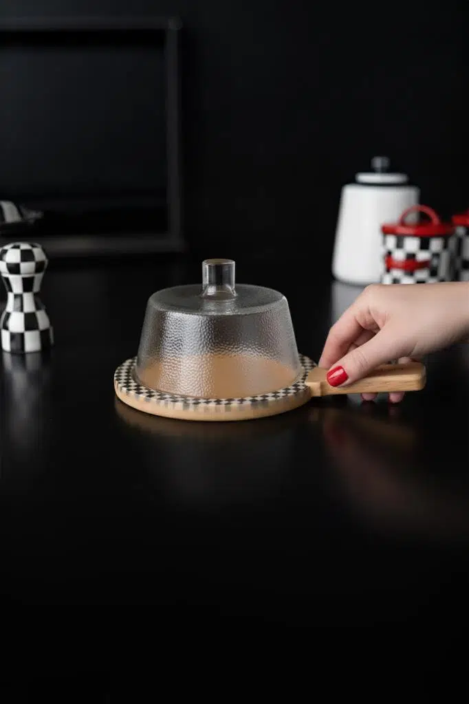 Çok Yönlü Kullanım: Sadece bir peynir tabağı değil; aynı zamanda şık bir kek fanusu, kahvaltılık sunum standı veya atıştırmalık servis tabağı olarak da kullanılabilir.