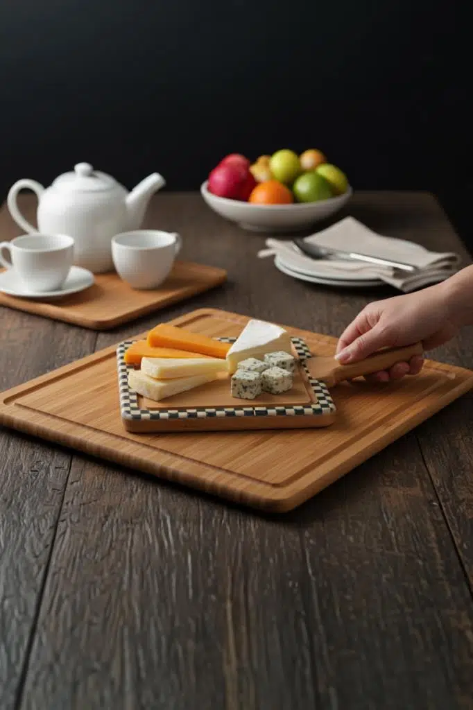 peynir servis seti, bambu peynir tabağı, 2 parça peynir seti, Bambum Ritual, kare sunum tabağı, atıştırmalık tabağı, ordövr tabağı, peynir bıçağı seti, meze tabağı, bambu sunum