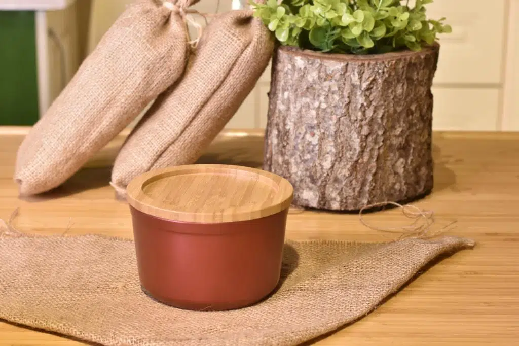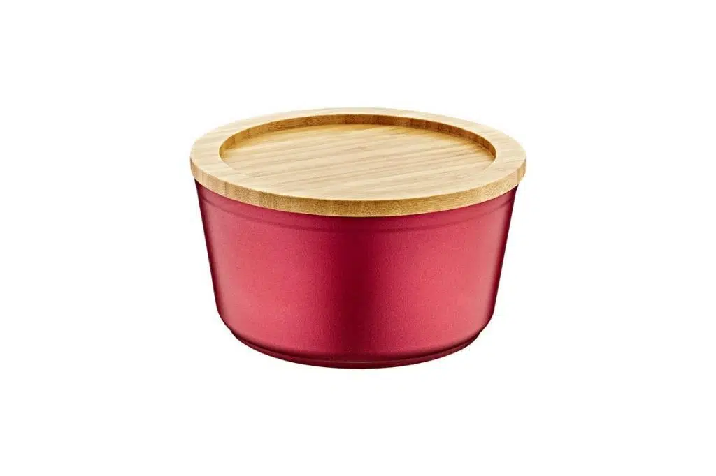 Bambum Slalom - Bambu Kapaklı Granit Saklama Kabı 16cm Kırmızı