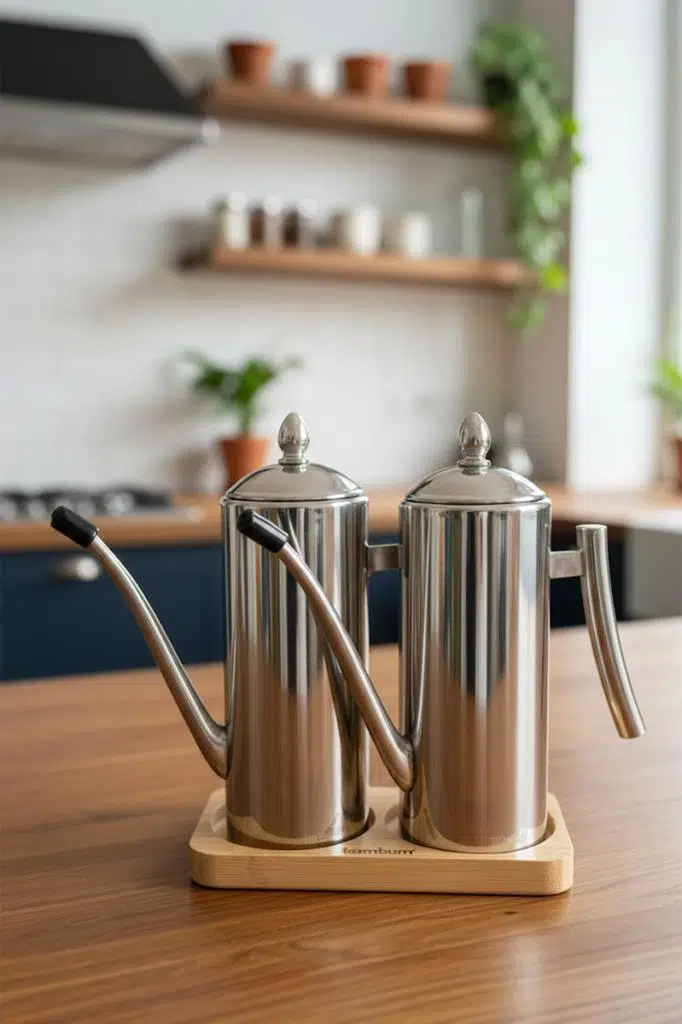 Bambum Standlı 2'li Çok Amaçlı Çelik Demlik & Yağlık Seti 1000ml | Barista ve Gurme Sunum