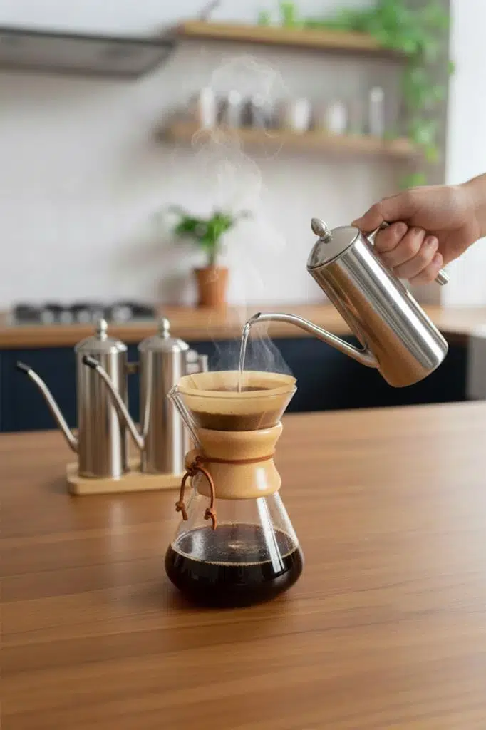 Hassas Döküm (Gooseneck): İnce ve kavisli ağız yapısı, suyun veya yağın akış hızını milimetrik olarak ayarlamanıza olanak tanır. Bu özellik, özellikle V60 gibi "Pour Over" kahve demleme teknikleri için hayati önem taşır.