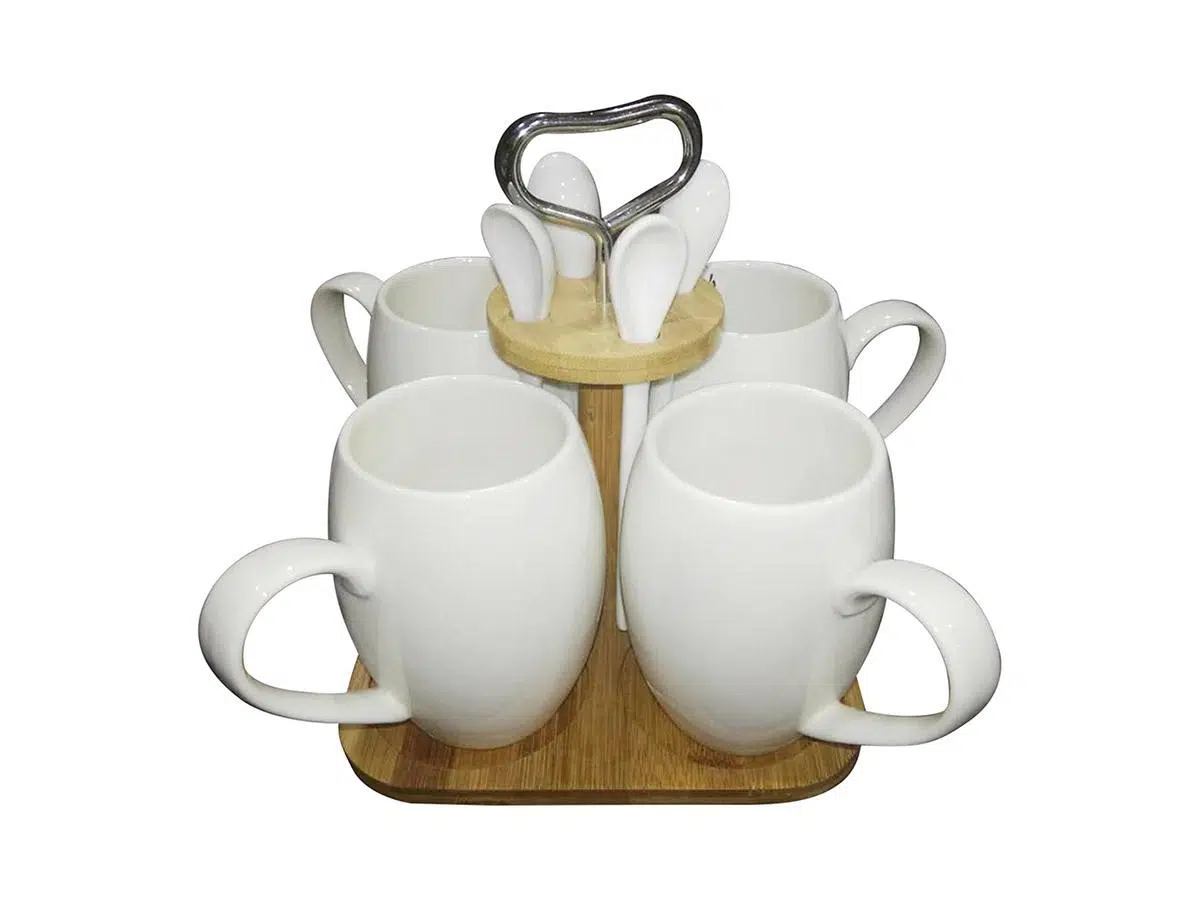 Suedo 9 Parça Kupa Seti Bambu doğallığını porselen şıklığıyla birleştiren Bambum Suedo 9 Parça Kupa Seti, içecek sunumlarınıza farklılık katacak. Askılı bambu standı, porselen kaşıkları ve sıra dışı tasarımlı porselen kupalarıyla Suedo, tarzınızı yansıtacak.