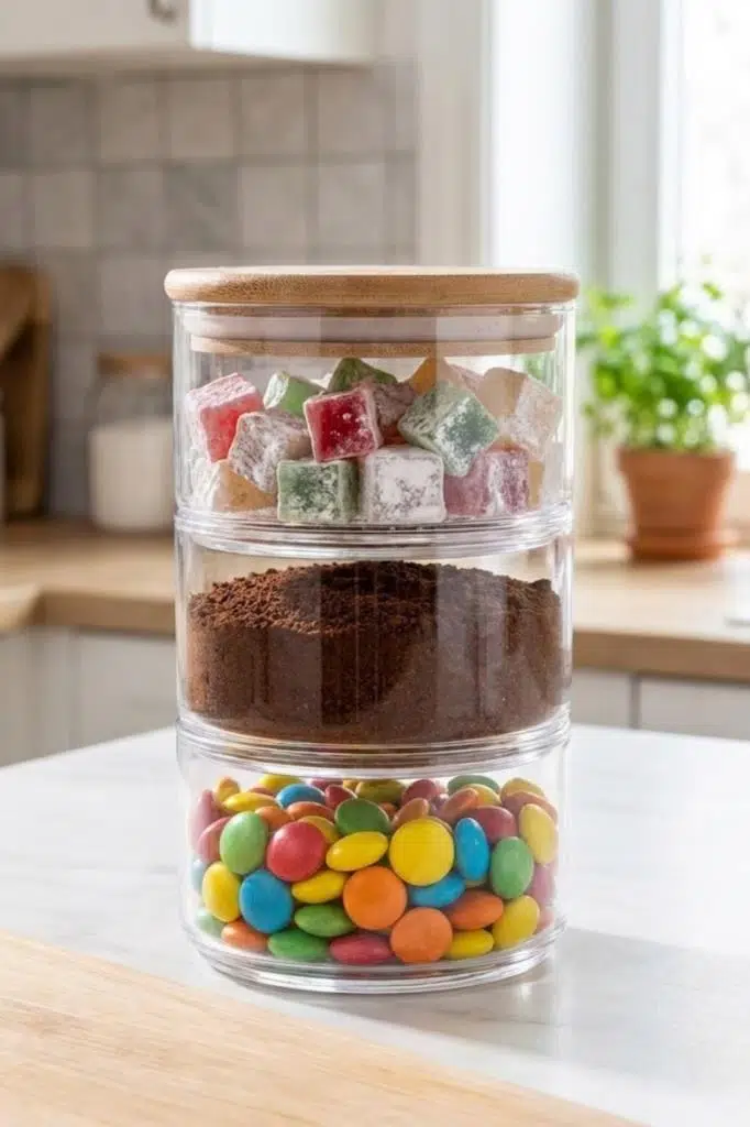 Bambum tade 3 katlı saklama kabı, hem şık tasarımı hem de pratik kullanımıyla mutfağınıza düzen kazandırır. Üç adet cam kabın üst üste geçebilen yapısı sayesinde alandan tasarruf sağlar, bambu kapağıyla da doğal bir dokunuş sunar. Kahvaltılıklar, kuruyemişler, baharatlar veya küçük atıştırmalıkları saklamak için ideal bir çözümdür.