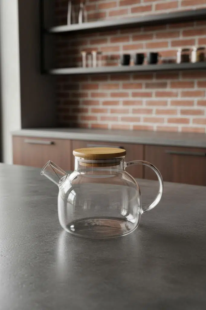 cam demlik, bambu kapaklı demlik, bitki çayı demliği, 600 ml demlik, Bambum Taric, çay sürahisi, ateşe dayanıklı cam, modern demlik, şeffaf çaydanlık
