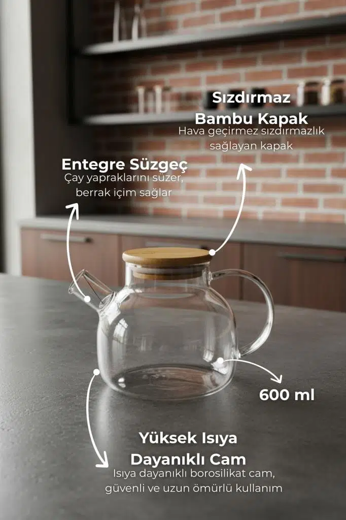 Kapasite: 600 ml – Günlük kullanım ve 2-3 kişilik çay servisleri için ideal hacim.