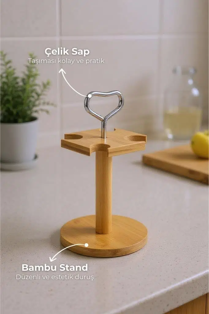 Kompakt ve Düzenli: Dikey standlı yapısı mutfak tezgahınızda az yer kaplar ve düzenli bir görünüm sağlar.
