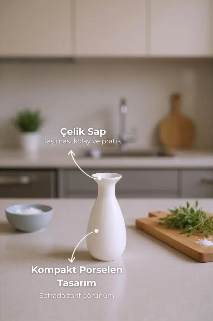 Kolay Taşıma: Standın ergonomik taşıma kulpu sayesinde tüm seti mutfaktan masaya tek seferde kolayca taşıyabilirsiniz.