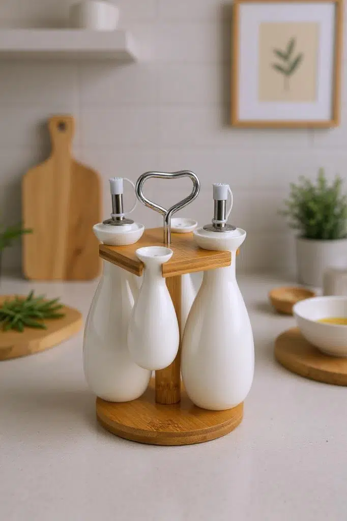 Hepsi Bir Arada Çözüm: Yağ, sirke, tuz ve biber ihtiyacınız için tasarlanmış şık ve komple bir settir.