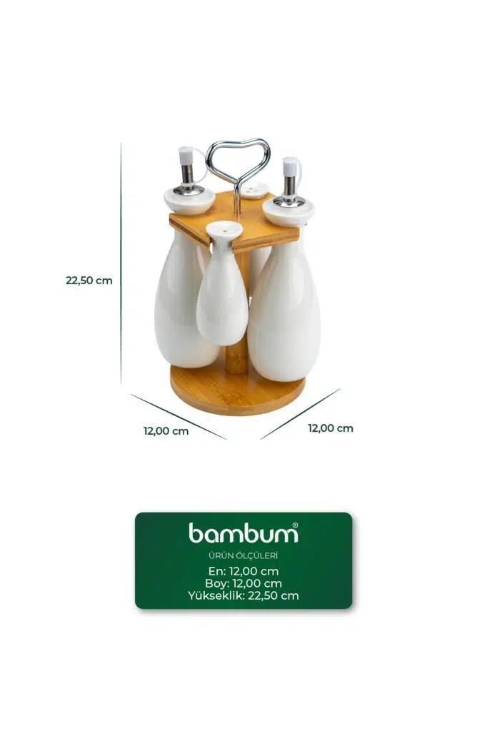yağlık sirkelik takımı, baharatlık seti, menaj takımı, Bambum Tiago, bambu standlı baharatlık, porselen yağlık, tuzluk biberlik seti, sofra sunum seti, 4'lü menaj takımı, mutfak düzenleyici, porselen baharatlık