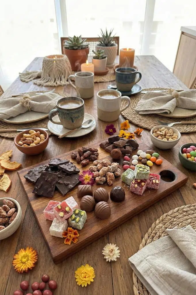 Sofrada: Peynir tabağı, şarküteri ürünleri, meyve veya çikolata/lokum sunumları için rustik bir servis tepsisine dönüşür.