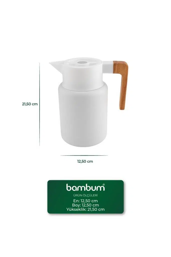 bambu termos, çelik termos 1.5 litre, Bambum Yasuo beyaz termos, paslanmaz çelik termos, sıcak soğuk içecek termosu, modern termos, uzun süreli ısı koruma termos