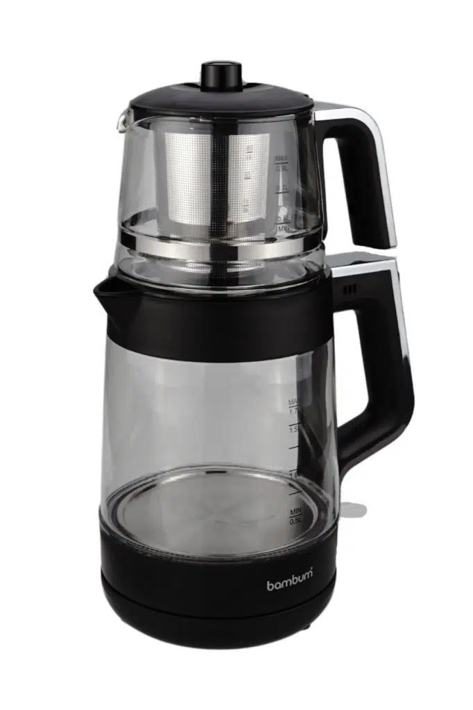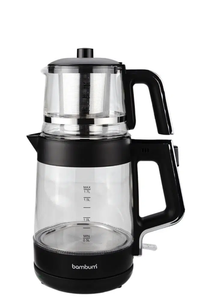 elektrikli çaydanlık, cam hazneli çay makinesi, Bambum çay makinesi, siyah çay makinesi, modern mutfak çaydanlığı, otomatik kapanmalı çay makinesi, cam demlikli çaydanlık, pratik çay makinesi, gizli rezistanslı çay makinesi