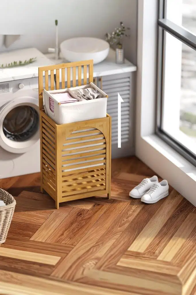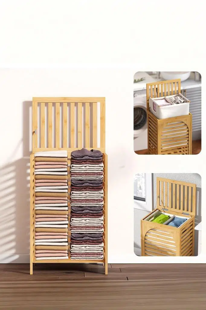 Hava Alan Yapı: Bambu çıtalar arasındaki boşluklar hava sirkülasyonu sağlar, böylece kirli çamaşırlarınızda kötü koku ve nem oluşumunu engeller.