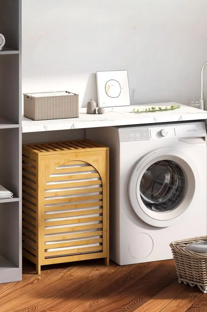Banyonuzda veya yatak odanızda hem düzeni sağlayın hem de doğal bir şıklık yaratın! %100 doğal bambudan üretilen bu 85 litrelik geniş çamaşır sepeti, mobilya şıklığındaki tasarımıyla plastik sepetlerin görüntüsünden sizi kurtarıyor. İçerisindeki iki bölmeli özel bez haznesi sayesinde kirli çamaşırlarınızı (renkliler ve beyazlar olarak) anında ayırabilir, çamaşır gününü çok daha pratik hale getirebilirsiniz.