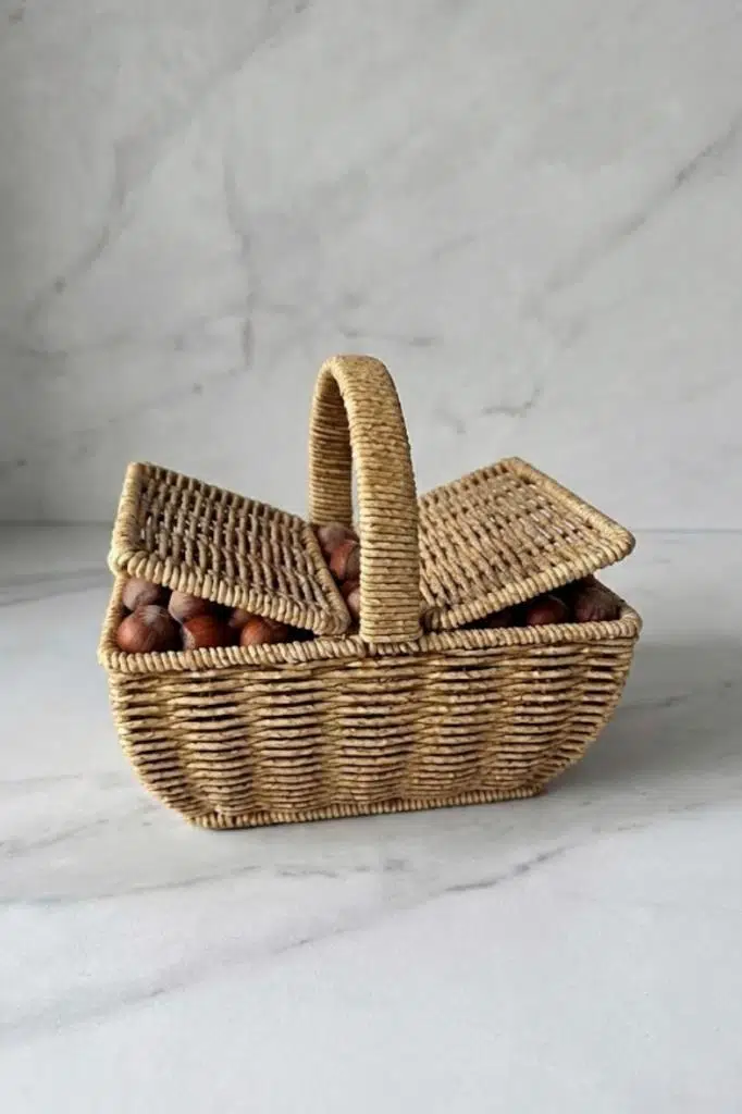 Kuruyemiş, ekmek, meyve gibi mutfak ürünlerinin yanı sıra; masa üstü düzenleyici veya dekoratif saklama sepeti olarak da rahatlıkla kullanılabilir.