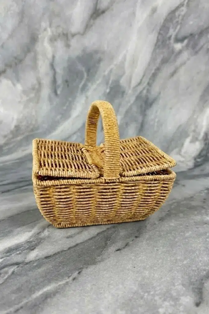 Doğal Hasır Kapaklı Dikdörtgen Rattan Sepet