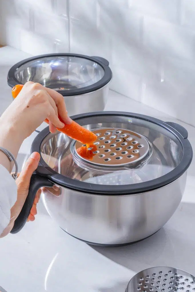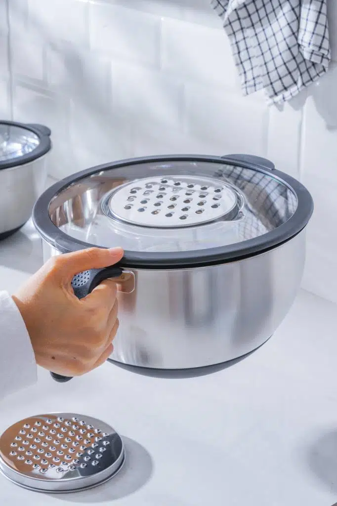 Focus Pro karıştırma kabı seti, paslanmaz çelik kap seti, 16-20-24 cm karıştırma kapları, hava geçirmez kapaklı saklama kabı, mutfak karıştırma seti, rende aparatıyla karıştırma kabı, şık mutfak gereçleri, çok amaçlı paslanmaz çelik set