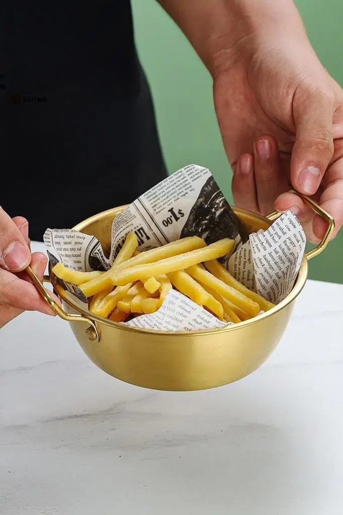 Sunumlarınıza altın bir dokunuş ve profesyonel bir şıklık katın! Gold Paslanmaz Çelik Sunum Tavası, 10 cm'lik minimal boyutu ve göz alıcı rengiyle sofralarınızın yıldızı olacak. Paslanmaz çeliğin dayanıklılığını gold rengin zarafetiyle birleştiren bu kulplu mini tava; soslardan reçellere, sıcak tadımlıklardan çerezlere kadar her şeyi şık bir şekilde servis etmeniz için tasarlandı.