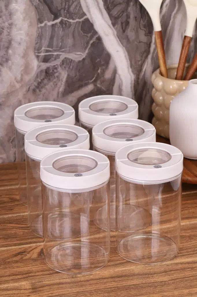 Lengo 6'lı 1200 ml Mühürlü Vakumlu Borosilikat Cam Erzak Saklama Kavanozu – 11x17 cm