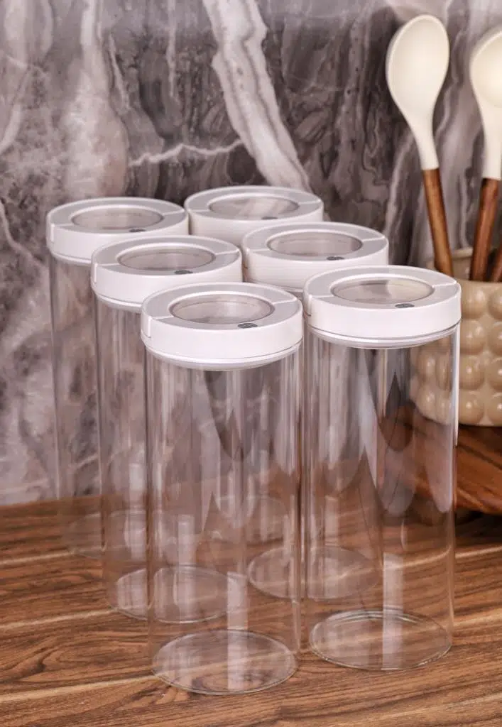 Lengo 6'lı 2000 ml Mühürlü Vakumlu Borosilikat Cam Erzak Saklama Kavanozu – 11x27 cm