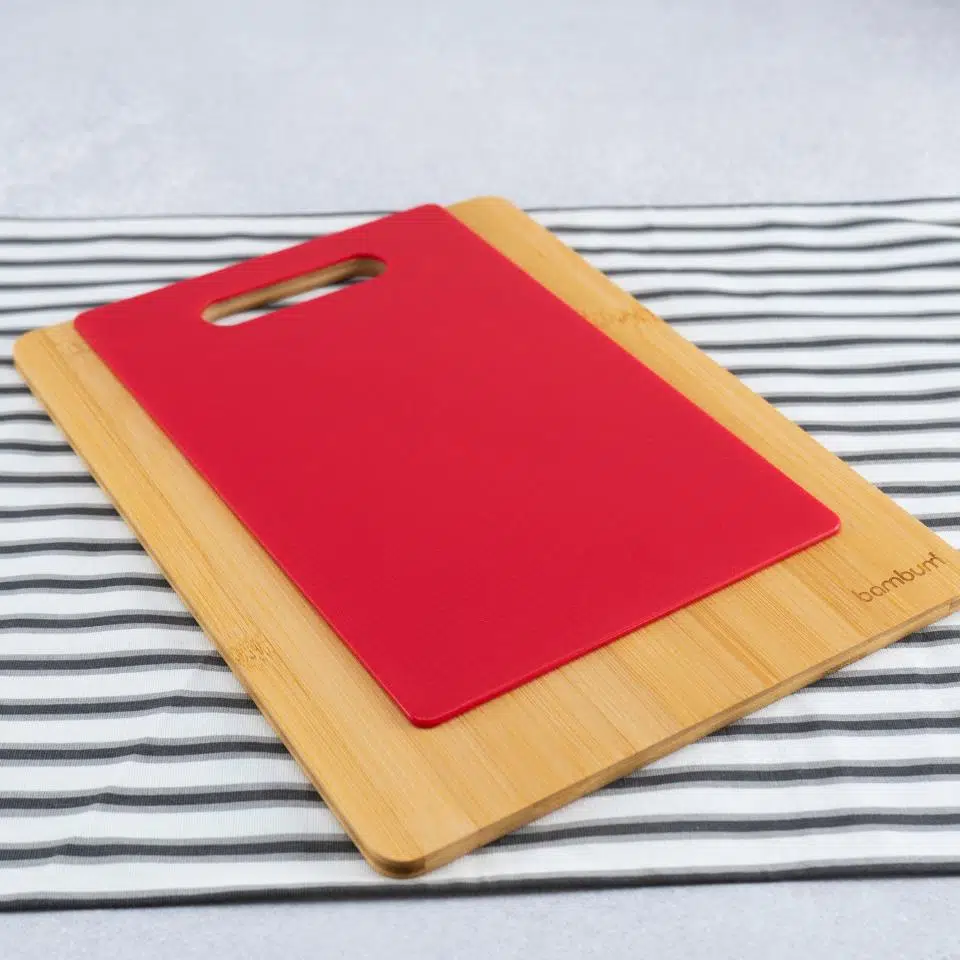 Leona İkili Kesme Tahtası Kırmızı, kırmızı renginin enerjik havasıyla mutfaklarınıza renk katacak. Hem işlevsel hem de şık tasarımı ile yemek hazırlıklarını daha hızlı ve keyifli hale getirecek. Kendi mutfağınıza bu pratik ve estetik kesme tahtasını ekleyin!