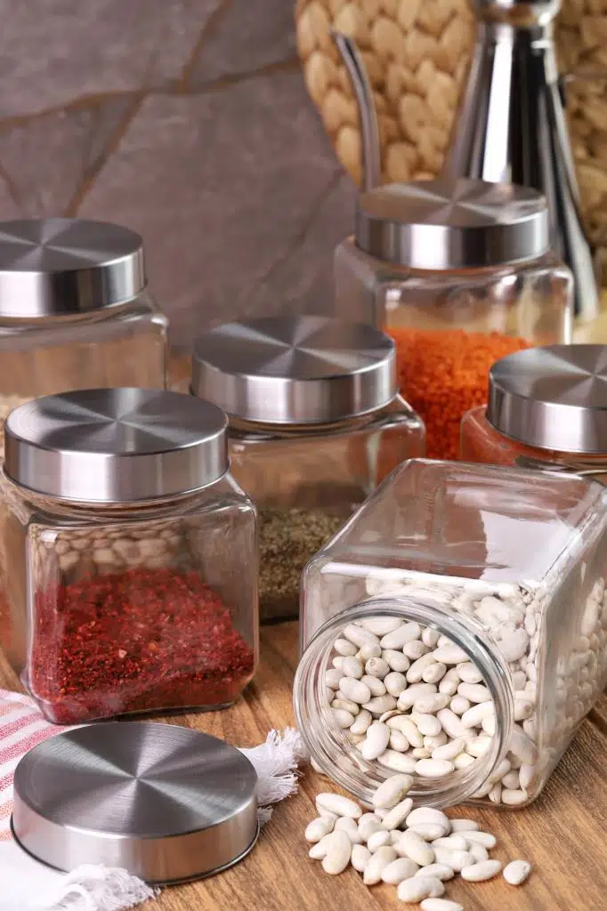 Farklı boyutlarda kavanozlarla tüm saklama ihtiyaçlarınıza pratik ve estetik bir çözüm sunar. Metal kapakların modern görünümü ile mutfağınızda düzeni ve zarafeti bir arada yaşayın.