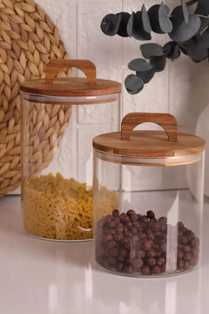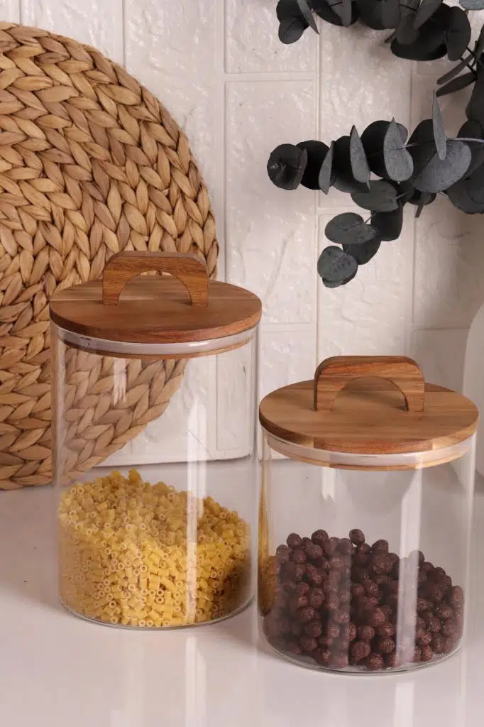 Mien 2'li Akasya Kapaklı Cam Saklama Kavanozları – 1850 + 2500 ml | Şık ve Sağlıklı Saklama Çözümü