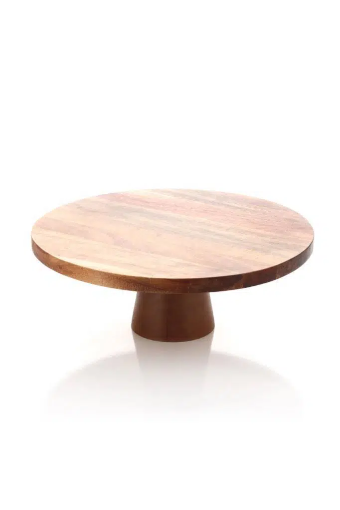 Sunumlarınıza seviye atlatın! Mien Akasya Pasta Standı, akasya ağacının kendine has kızıl-kahve tonları ve canlı damar yapısıyla sofranızın başköşesine yerleşmeye aday. Standart tabakların aksine, ayaklı tasarımı sayesinde ikramlarınızı masadan yükselterek daha görünür ve etkileyici bir sunum yapmanızı sağlar.