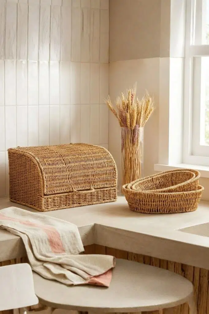 Mutfağınıza doğal bir sıcaklık katmak ve ekmeklerinizi sağlıklı bir şekilde saklamak için Kapaklı Rattan Ekmek Kutusu tam size göre!